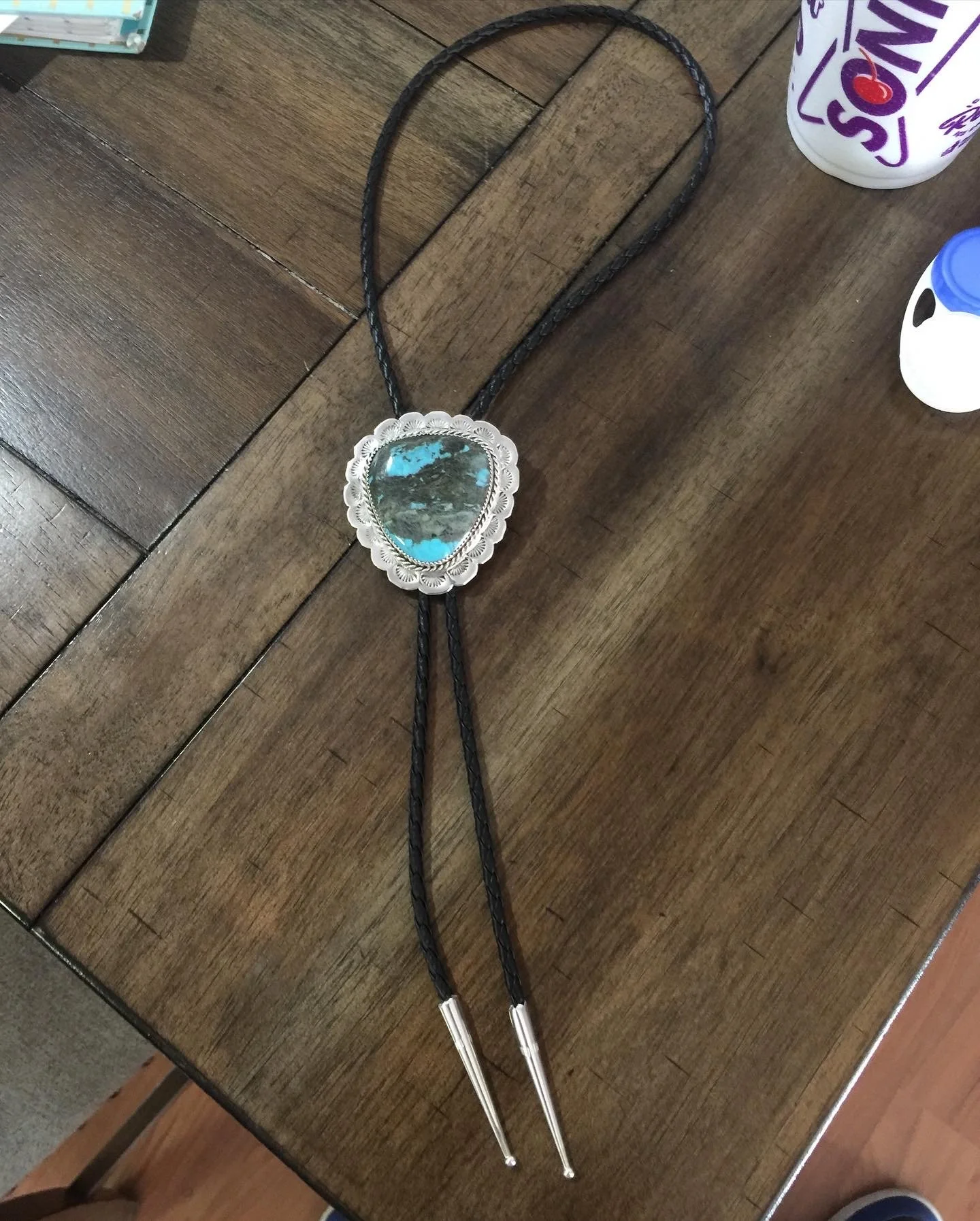 This bolo Tie was made for my Cheii’s Funeral. My uncle helped me finish the piece so I could make it to the chapter house meeting. The tips are not mine. 5/28/2019