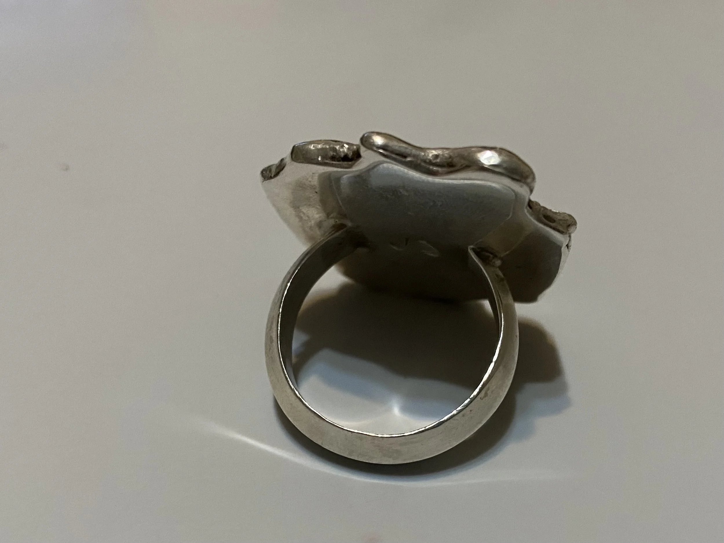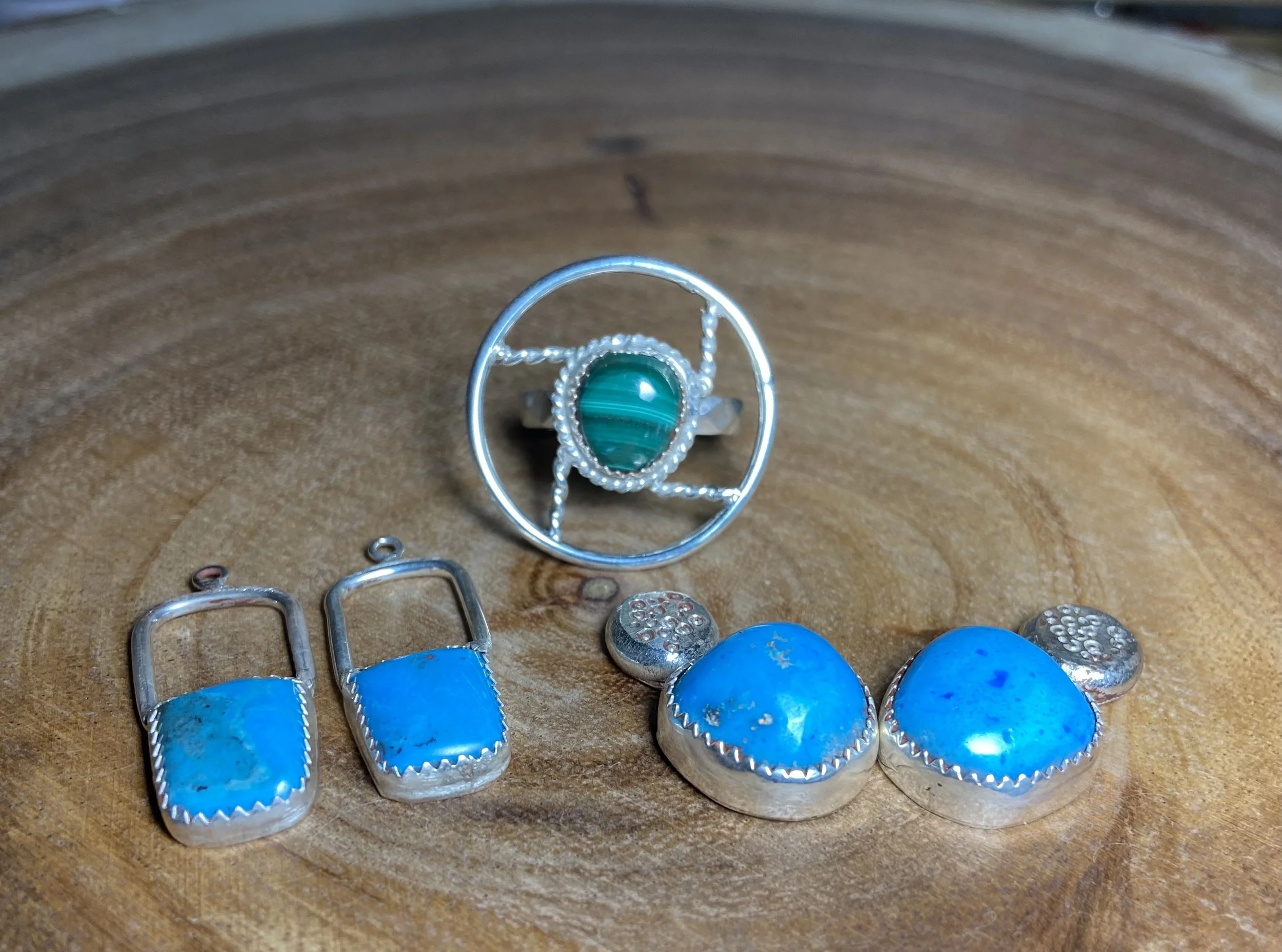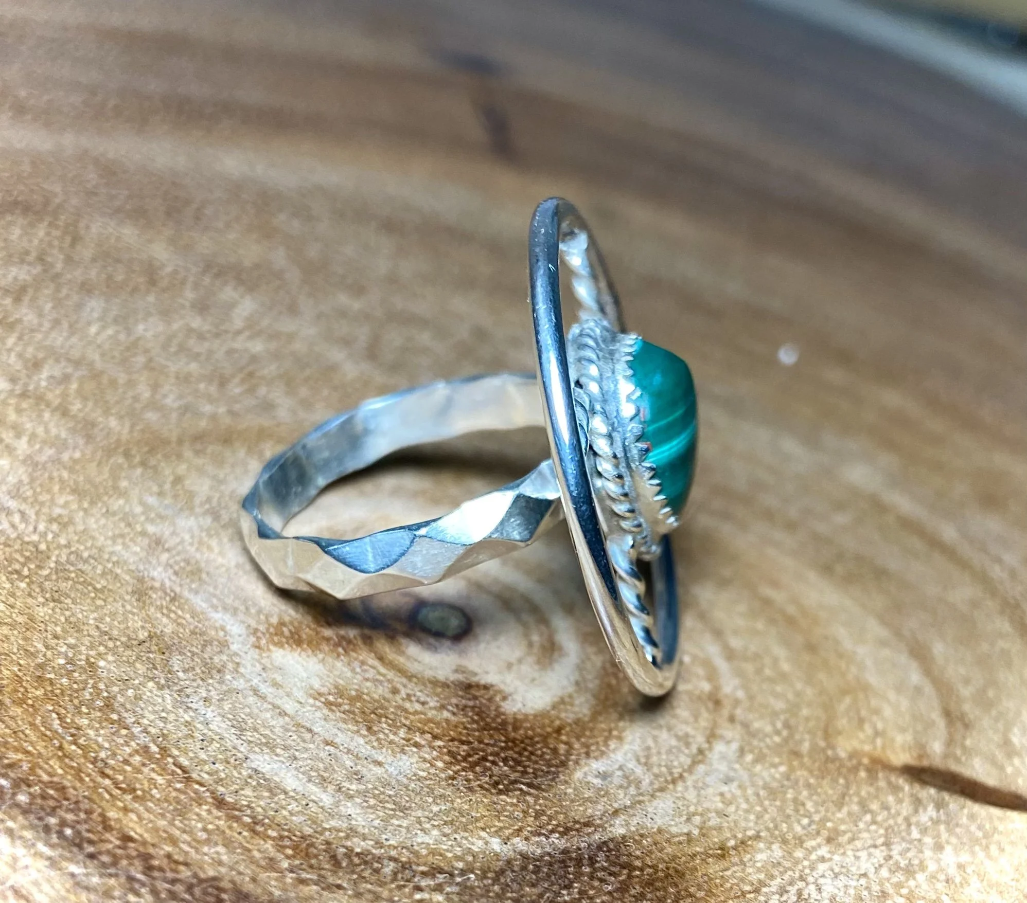 Ring made for my sister. Malachite is a beautiful stone and this one really reminds me of a traditional 1970’s crystal rug.